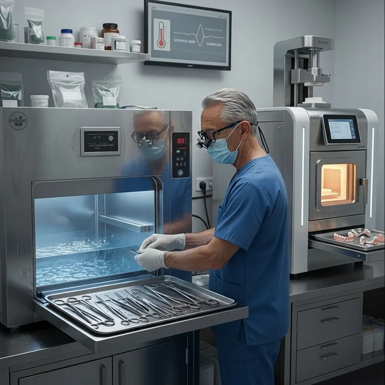 Todo nuestro instrumental pasa por un proceso de lavado ultrasónico y calor extremo en máquinas de última generación que garantizan una desinfección total.